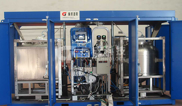 設備集成雙組分噴漆泵、輸送泵、涂料周轉箱、攪拌器等并置于集裝箱內(nèi) 混合配比范圍:1:10~10:1 輸出流量:6/min~13.64/min 處理材料精度可達20000cps