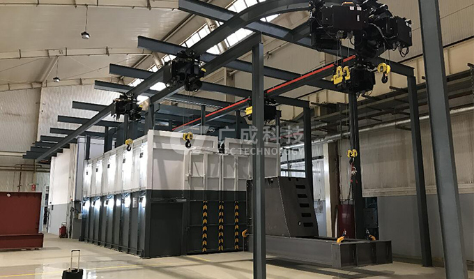 Dipping paint and drying system is equipped with paint immersion tank, heating system, drying room, organic waste gas treatment system, electric conveyer system, online monitoring system,etc